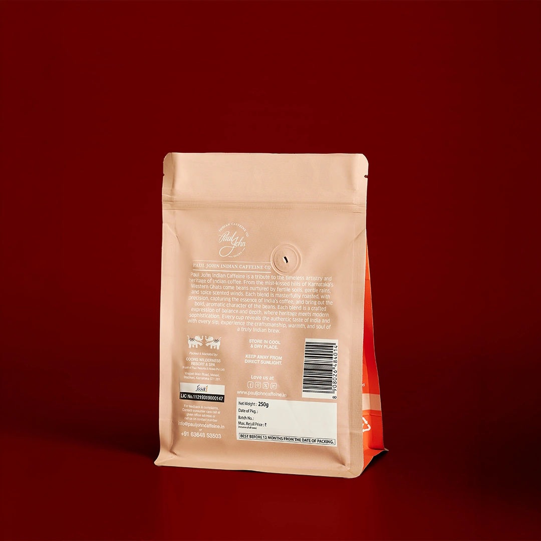 The 100% Indian Arabica beans used in this blend are known for their superior quality, resulting in a sweeter, smoother, and more refined taste. The flavor profile is complex yet well-rounded, making it a standout among premium Indian coffees.